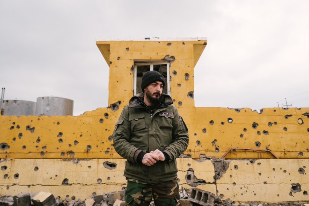 Amir Khaled, 27 ans, est un peshmerga iranien exilé en Irak depuis 9 ans. Il protège le camp de familles de peshmergas iraniens, près de la ville de Gomaspan, après que le lieu a été ciblé le matin du 4 mars par trois missiles provenant d’Iran. Une photo parue dans Libération © Pauline Gauer