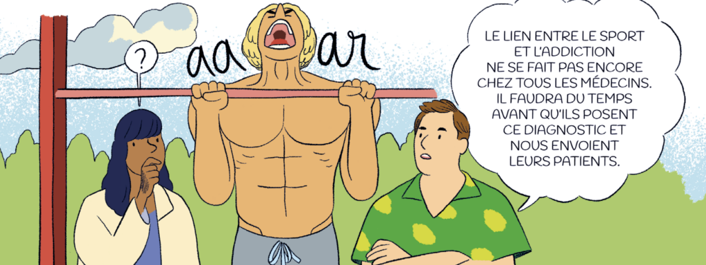 Si le sport est l’une des clés pour prendre soin de son corps et de son mental, il peut aussi devenir un remède dont on ne peut plus se passer. Au risque de tomber dans l’addiction. Dans le dernier numéro de La Revue Dessinée, Assia Hamdi a enquêté sur ce tabou en interrogeant des patients, des addictologues et des médecins qui accompagnent ces malades du sport. Un sujet illustré par Matthieu Méron.