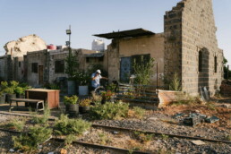 La gare d’Al-Qadam, à Damas, où vivaient Mazen Al-Mala et sa famille depuis des générations, a été abandonnée par le régime en 2015. À son retour, l’homme de 62 ans a retrouvé la maison de son grand-père détruite par les bombes. Avec une dizaine d’autres familles, il ont dévotement repris possession des lieux en 2017, tentant de remettre sur pied ce qu’il reste de la noble institution. © Pauline Gauer