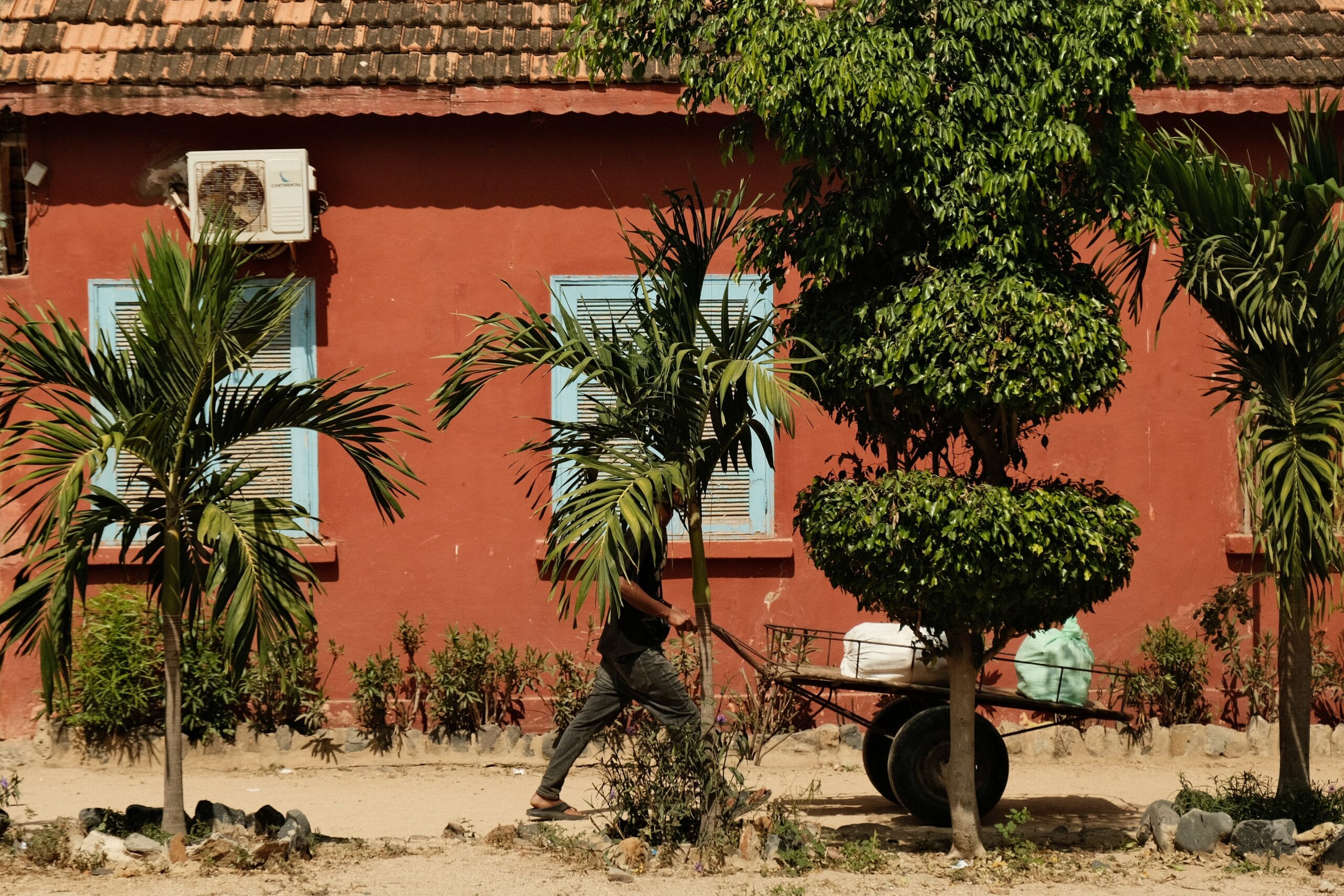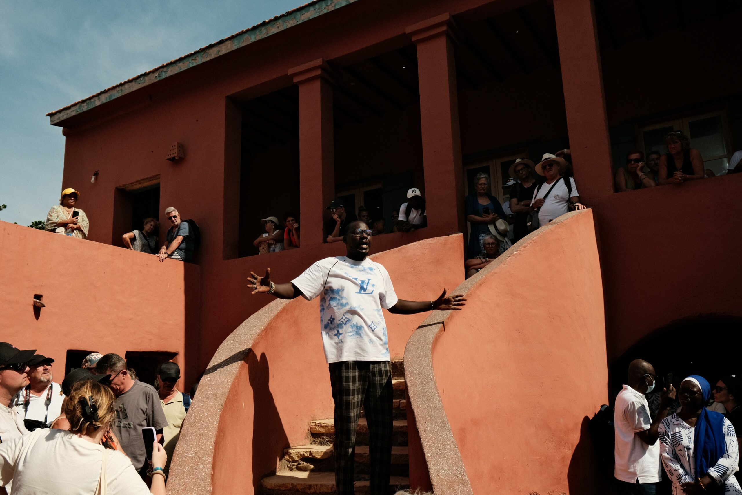 En une phrase, Mohamed donne le ton. Le guide accueille ses visiteurs d’un jour sur la place des Droits humains qui prolonge l’embarcadère où vient d’accoster la deuxième chaloupe de la journée en provenance de Dakar, la capitale du Sénégal. Avec gravité, il endosse l’héritage de son île natale pour transmettre la mémoire de ses ancêtres esclaves. Ceux qui ont transité par Gorée, mais aussi tous ceux embarqués de force depuis les ports africains : Ouidah au Bénin, Badagry au Nigeria, Cape Coast au Ghana…